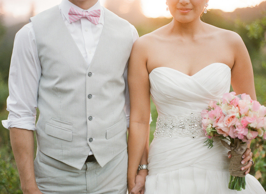 Before we began Lambs & Kings, we coordinated wedding events for lovely couples with lovely weddings. Last year, we had the pleasure of coordinating a drop dead gorgeous wedding in Aptos, Ca at the the Pacific Estate and Vineyard. It was a cute country chic estate that had a small vineyard and a large lawn and patio that overlooked the Santa Cruz mountain scenery. It was a perfect setting for vintage inspired chic wedding which is exactly what our clients were dreaming of. My bride is super creative and dreamt up the whole event and knew exactly what she wanted from the shades of pink, to the collected vintage glass, vintage typewriter guestbook, and tons of crafty projects! Everything was meticulously thought out.